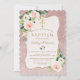 Charm Pink White Flowers Rose Gold Glitter Baptism Invitation
