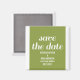 Charm Save the Date Magnet in olive green and white with a whimsical typography design. This trendy and modern save the date magnet is easy to customize with your wedding details. For more customization options, click on the Customize It button.