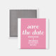 Charm Save the Date Magnet in pink and white with a whimsical typography design. This trendy and modern save the date magnet is easy to customize with your wedding details. For more customization options, click on the Customize It button.