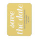 Charm Save the Date Magnet in yellow and white with a whimsical typography design. This trendy and modern save the date magnet is easy to customize with your wedding details. For more customization options, click on the Customize It button.