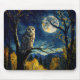 Charming Autumn Night, Wise Owl and Full Moon - Mouse Pad