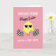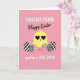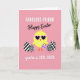 This design shows a round, yellow baby bird centered on a soft warm pink background, wearing pink heart-shaped glasses that give it a flirty, friendly look 🐰. A short strand of small white beads circles its neck like a gentle accessory, adding a sweet touch without crowding the scene. In one wing it holds a tiny lavender item decorated with closed eyes, as if it’s a shy little companion the bird is showing off to someone nearby. Three egg shapes sit around the bird, each filled with black-and-white patterns: one with diagonal stripes, one with a checker pattern, and one with polka dots, creating a fun contrast. Text is arranged around the illustration in two styles, with simple sans-serif lines paired with flowing cursive-like lettering that frames the characters rather than covering them. The lettering appears in light tones that stand out against the pink field, with key words placed near the top and additional phrases balanced along the sides 🌷. The heart-shaped glasses are bright pink, and the three patterned eggs read as crisp black marks on white ovals.