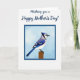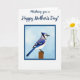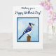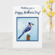 This greeting card opens on a white background that feels airy and calm, with a dark blue calligraphic message placed across the top like a gentle note to someone you care about ❤️. Just below, a neat square border in the same dark blue holds an illustrated bird scene, giving the layout a tidy, balanced look. Inside the frame, a pale blue sky backdrop sets a quiet, springlike mood, as if the bird is pausing for a tender moment before taking flight. The bird is shown in profile with rich blue feathers, crisp white sections, and fine black markings along the wings and tail, including a small crest and a dark accent around the eye and neck. Its chest fades into a soft off-white, and the calm, forward gaze suggests a steady, affectionate presence, like a trusted friend nearby 🌼. A warm brown wooden post sits beneath its feet, adding an earthy touch that contrasts with the cool blues above. The top message appears in dark blue lettering, while the framed illustration below is centered and outlined with a matching dark blue square. The pale blue background, the bird’s layered blue-and-white plumage, and the warm brown post sit neatly within the dark blue frame.