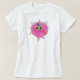 This white, short-sleeved t-shirt features an adorable, fluffy, pink monster who is ready to party. The character is wearing a pointed, blue party hat, has small fairy wings and green limbs, and is standing in striped socks/shoes. The design is cheerful and child-friendly, making it an ideal gift for a birthday or any party.