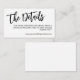 Wedding details insert card for a wedding with black text against a white background. Calligraphy details insert card for your wedding in a black and white design. Simple wedding details insert card with a charming black script.
