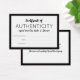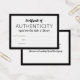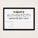 Small certificate of authenticity card in black and white to which you can add your name or business name inside a thick black border.