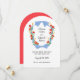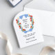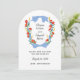 Charming and sweet, this modern crest detail features a periwinkle blue ribbon tied into two bows and accented by rich red and golden yellow wildflower sprigs. The handwriting style fonts add a casual, cottage core aesthetic that suits an outdoor wedding celebration between two lovers that enjoy fresh air and mountain vistas. Simple and easy to edit text gives full flexibility for personalization on this save the date card, including a scannable QR code to send guests directly to a website with travel information and more.