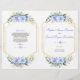 Charming Blue Floral Gold Frame Wedding Program Flyer