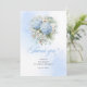 Boho wedding thank you card with blue hydrangea watercolor flowers and eucalyptus greenery, professionally printed by Zazzle on premium cardstock with crisp detail, rich color, and a smooth elegant finish.