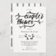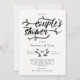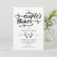 A charming couple's shower invitation with a black brush script decorated with little leaves.