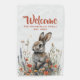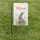 Extend a warm greeting with our Charming Bunny Welcome personalized garden flag. This delightful design features an adorable watercolor bunny peeking out from a whimsical meadow of soft-hued wildflowers and delicate lavender. Above, a friendly "Welcome" in a rustic script is accompanied by your personalized family name and established date, adding a unique, inviting touch. It's the perfect way to add charm and character to your yard, ideal for new homeowners, growing families, or anyone who adores a touch of rustic cuteness. Celebrate spring, Easter, or simply everyday joy with this custom outdoor accent.