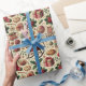 This cozy and nostalgic Christmas wrapping paper is designed especially for grandmothers. Featuring delightful elements like teacups, knitting needles, rocking chairs, and Christmas cookies surrounded by festive holly, mistletoe, and ornaments, the design evokes warmth and tradition. With a seamless, text-free pattern in a comforting palette of red, green, gold, and cream, this wrapping paper is perfect for heartfelt holiday gift-giving.