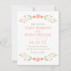 Sweet and charming, this no-photo save the date features delicate floral garland borders in coral, peach, and sage green framing your wedding details in a clean, typographic layout. The cheerful botanical illustration gives it a fresh, garden-party feel without being overly formal. All text including names, date, location, and website are fully customizable.