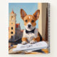 Add a touch of architectural charm to your space with this delightful art print of a corgi dressed as an architect in an urban setting.