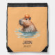 Charming Cute Capybara with Orange and Kids Name Drawstring Bag