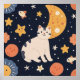 Adorable cute little kitten cat among stars, moon, planets and fish at night. Fantastic design.