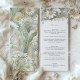 Add a touch of charm to your wedding reception with this delightful Daisy Wedding Menu Card. Featuring a delicate pastel color palette, this vertical menu card is adorned with beautifully illustrated white daisies and soft green foliage, creating a serene and romantic atmosphere. The intricate floral artwork is complemented by a soothing blend of light green, cream, and soft yellow tones, making it a perfect choice for weddings with a nature-inspired or vintage theme. The front of the card presents the couple's names in elegant script, while the back showcases the menu details in a layout that harmonizes with the floral design. This menu card is ideal for those looking to infuse their wedding decor with a gentle and inviting aesthetic.