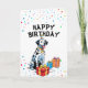 A Dalmatian with birthday gifts, great for birthday-themed decorations.