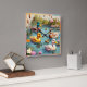"Charming Ducks on Pond" Square Wall Clock