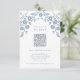 Charming Dusty Blue Folk Flowers Floral QR Code RSVP Card