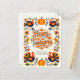 Send a little piece of art straight to the mailbox with this customizable Thanksgiving postcard. The front features a folk art-inspired border of charming turkeys and plump pumpkins, all dancing amongst a cascade of autumn leaves. The centerpiece, "Happy Thanksgiving," is rendered in a warm, retro-style font that feels as cozy as a favorite fall sweater. The back provides a generous space for your personalized message and address, making it a perfect way to share gratitude with clients, family, or friends.