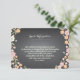 Lovely flowers in soft pink, apricot and blush with berries and blooms in ivory set against a trendy black chalkboard background frames your wedding information card in charming style. Use to include directions, local hotel accommodation information or other wedding details. Perfect for a spring or summer wedding or when a garden or outdoor theme is part of your special day. Whimsical mix of typography adds fun and flair. Coordinating products in this suite include invitation, rsvp card, postage, place cards, table number cards, address labels and favor stickers - everything you need for a charming and complete wedding ensemble.