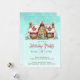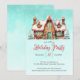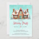 Celebrate the season with this delightful holiday party invitation featuring a festive gingerbread house decorated with candies and icing, set against a cheerful teal sky. Ideal for a cozy Christmas gathering.