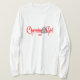 Ladies long sleeve white tee with Charming Girl in red 'Charmed' font and the wiccan symbol for the triple goddess across the chest
