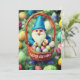 Charming Gnome & Basket Easter Egg Hunt Invitation. A happy gnome in blue clothing, looking over a basket of colorful Easter eggs. Personalize this template with text on the front and back of the card. Make it for breakfast or dinner. Edit it to make more changes.