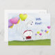 This charming ladybug is holding a colorful bouquet of heart-shaped balloons, as she stands among some colorful heart-shaped flowers. The balloons and flowers are colored in purple, pink, yellow, blue, and green. Make this postcard your own by adding other text, or delete to leave blank. Original artwork by, One Artsy Momma.