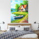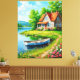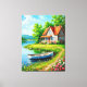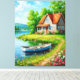 Charming Lakeside Cottage with a Boat Canvas Print