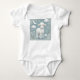 Baby bodysuit with charming, sweet lamb surrounded by clouds and a moon with a blue background.