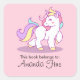 At the top of the bookplate, a charming little unicorn dances on its hind legs with glee. Its mane and tail flow out in the air like ribbons, and its horn sparkles with a soft rainbow glow. Its hooves graze the edge of a fluffy cloud, and stars peek out from behind it. A great way to identify books that belong to that special unicorn lover.