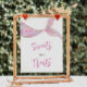 Dive into a world of sweetness with our charming "Sweets and Treats" sign, featuring an adorable mermaid tail design in purple hues. This editable sign adds a whimsical touch to your event while guiding guests to indulge in delicious desserts and treats. Personalize it to suit your party's vibe and make your dessert table shine like a treasure trove under the sea!