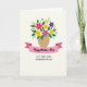 This card shows a stylized bouquet of flowers rising from a warm terracotta-colored vase on a soft creamy background, with a gentle, affectionate feel ❤️. The blossoms are flat, five-petaled shapes in fuchsia, sunny yellow, and deep violet, each with a contrasting center dot that makes them pop. Layers of green leaves and small sprigs weave between the flowers, creating the look of a full arrangement that feels like it was gathered with care for someone special. Across the lower part of the vase, a pink ribbon banner drapes in a smooth curve, adding a cozy, gift-like touch. Centered on the banner, the words “Happy Mother’s Day” appear in a casual cursive-style font in a darker pink tone. Beneath the ribbon, a second line of text reads “TO A VERY SWEET DAUGHTER-IN-LAW” in simple uppercase lettering, set in a darker shade for contrast 🌼. The bouquet’s stems and leaves cluster thickly above the ribbon, with broad leaves and delicate sprigs filling the space around the bright blooms.