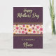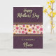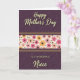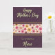 This card features a tall, centered layout on a deep plum background with a lightly textured look that feels cozy and affectionate ❤️. Across the top, “Happy Mother’s Day” sits in flowing cream lettering, gently standing out against the dark field. The middle section is a wide off-white band filled with stylized flowers, where soft pink, peach, and golden-orange petals cluster like a bouquet shared between close family. Small darker centers and rounded shapes give the blooms a tender, friendly energy, like an unspoken thank-you in flower form 🌼. Thin paired gold lines run above and below this floral strip, adding a subtle gleam that frames the centerpiece. In the lower section, “TO A WONDERFUL Niece” appears in cream text, with “Niece” in matching flowing lettering and the rest in neat uppercase. The floral band sits horizontally across the center, bordered by those slim gold lines, with blossoms scattered in varied sizes against the pale background.