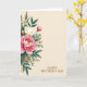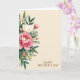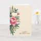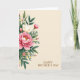 Designed with a calm botanical look, this card features a cluster of flowers arranged mainly along the left edge on a soft beige background. A large many-petaled bloom in deep pink sits near the center of the cluster, with a warm golden stamen that draws the eye like a quiet ❤️. Beside it, a full white flower opens in gentle layers, leaning toward the pink bloom in a way that suggests closeness and affection. Deep green leaves weave between the blossoms, curving in different directions to create a relaxed, natural flow. Small pink buds appear throughout, still closed as if waiting to open, while tiny yellow star-shaped flowers add light touches of color like little 🌼. On the lower right, a short message in a classic serif font is set neatly in a darker tone, leaving plenty of open space around it. The illustration is softly lit, and the left-side bouquet stands out against the creamy background with fine petal and leaf details.