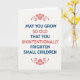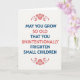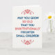 This design shows a soft cream background with a tall, vertically stacked message in deep blue and coral-red that leans into cheeky affection, like a teasing joke shared between close friends ❤️. The main text reads, “MAY YOU GROW SO OLD THAT YOU UNINTENTIONALLY FRIGHTEN SMALL CHILDREN,” arranged in centered lines that guide your eye from top to bottom. Key words such as “SO OLD” and “UNINTENTIONALLY” switch to coral-red for emphasis, adding a flirty wink to the otherwise steady blue lettering. The letterforms are simple and easy to read, with generous spacing that keeps the joke feeling airy rather than heavy. At the top, a symmetrical coral floral motif frames the message like a small bouquet, giving the humor a gentle, almost romantic polish 🌼. A matching floral design appears at the bottom, mirroring the top to create a balanced, classic layout. The overall look feels like a tender ribbing—warm, close, and a little mischievous—without needing any characters or scenery. The coral flowers show layered petals and branching leaves, positioned neatly above and below the centered text.
