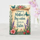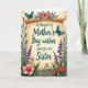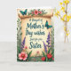 This card features an aged, creamy parchment scroll at the center, surrounded by a garden-like border that feels like a sisterly bouquet offered with a gentle, affectionate touch ❤️. Across the middle of the scroll, the message reads “A Bouquet of Mother's Day wishes Just for you Sister,” set in flowing teal lettering that stands out against the warm paper tone. Soft, diffused lighting gives the scene a calm, tender glow, as if the flowers are leaning in close to frame the words. Around the edges, coral-pink blossoms with bright yellow centers mingle with tall lavender-purple flower spikes and deep red tulip-shaped blooms, their green leaves curling inward like an embrace 🌼. The layout keeps the text centered and easy to read, while the florals form a lush frame that guides your eye back to the message. Two blue winged insects add motion and contrast, one resting along the upper edge of the scroll and the other hovering to the right of the lettering. Fine details show subtle black accents on their wings, with the parchment’s curled edges and soft texture visible beneath them.