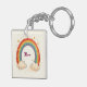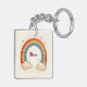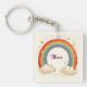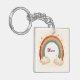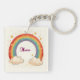 This personalized keychain features an attractive watercolor rainbow with glowing golden stars and fluffy clouds.