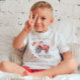 Our adorable red tractor birthday t-shirt is the ultimate way to mark your child's second year of life with a special touch. The custom design showcases the words "I'm THREE" in a whimsical, playful font, accompanied by an endearing illustration of a cute red tractor, making it an ideal choice for your little birthday adventurer.