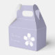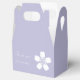 Give your guests, bridesmaids, groomsmen, or anyone else a special treat with these customizable favor boxes featuring a pastel lavender background with a delicate white cherry blossom on the front and back of the box. Both of these sides also feature some sample text that you can customize for your own wedding or event. Be sure to check out the other products in the Charming Sakura in Lavender set to create a truly coordinated look for your event.