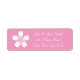 A petal pink return address label is decorated with a white cherry blossom on the left and sample text on the right for customizing to make it your own. Use these labels on the outside of your invitations or "Thank You" cards for an elegant touch, especially when combined with the other Charming Sakura in Petal Pink cards, or swap to the standard address sized labels to pre-address the RSVP cards for your guests.