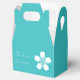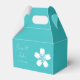 Give your guests, bridesmaids, groomsmen, or anyone else a special treat with these customizable favor boxes featuring a turquoise background with a delicate white cherry blossom on the front and back of the box. Both of these sides also feature some sample text that you can customize for your own wedding or event. Be sure to check out the other products in the Charming Sakura in Turquoise set to create a truly coordinated look for your event.