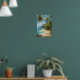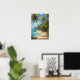 Immerse yourself in a digital art masterpiece that transports you to a realm of pure relaxation. A charming sandy beach unfolds before your eyes, set in a tropical paradise where azure waters kiss the shore. Palm trees sway in rhythm with the gentle breeze, casting dappled shadows on the sun-kissed sand. This poster captures the essence of tranquility and invites you to escape to a coastal haven.