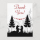 Charming Silhouette Mountain Bear Couple Thank You Postcard in Black, White and Red. ~