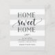 Charming and modern moving announcements let friends and family know about your new home sweet home! Design features a subtle striped background in pale gray and white, with "home sweet home" in soft black script and block typography. Use the template fields to add your custom intro, new address and names. Information repeats on the reverse side with space for recipient addressing.