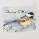 Send a "Thinking Of You"message with a charming chickadee perched in lovely flowers on this bird lovers postcard. Realistic details in black, cream and blue are shown from my original watercolor painting.
