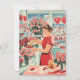 A beautifully illustrated vintage-style depiction of a florist arranging a bouquet of roses in a bright and colorful flower shop. The scene is filled with lush pink and red roses, heart-shaped balloons, and Valentine-themed decorations. A teddy bear and love letters add a romantic touch to the setting. The florist, dressed in a classic red dress, is gracefully focused on her craft, surrounded by the vibrant energy of love and flowers.