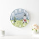 Charming Watercolor Lighthouse Coastal Scene Name Large Clock